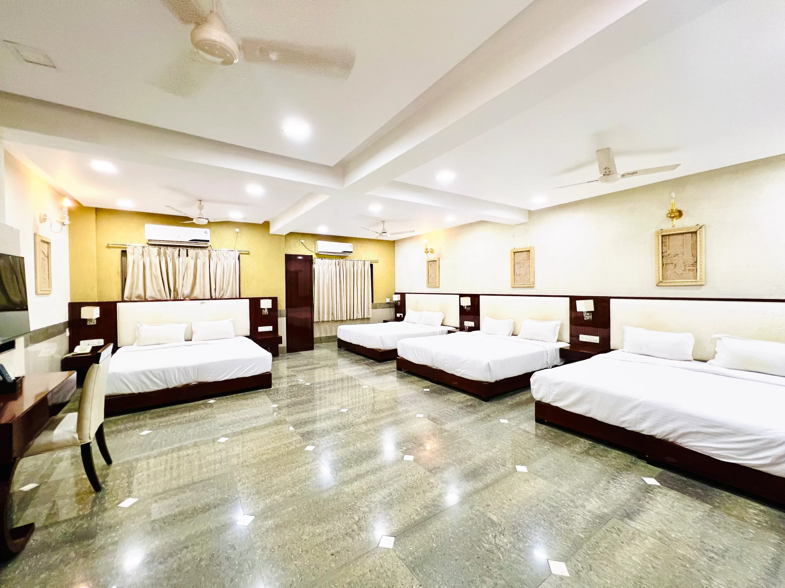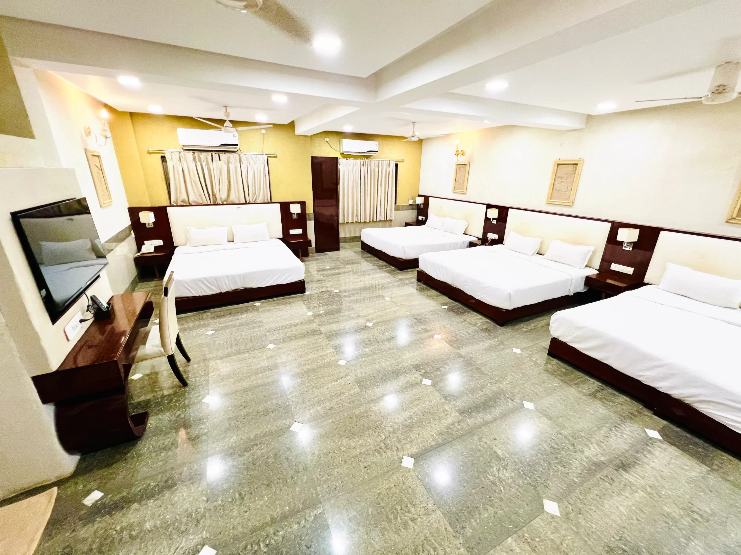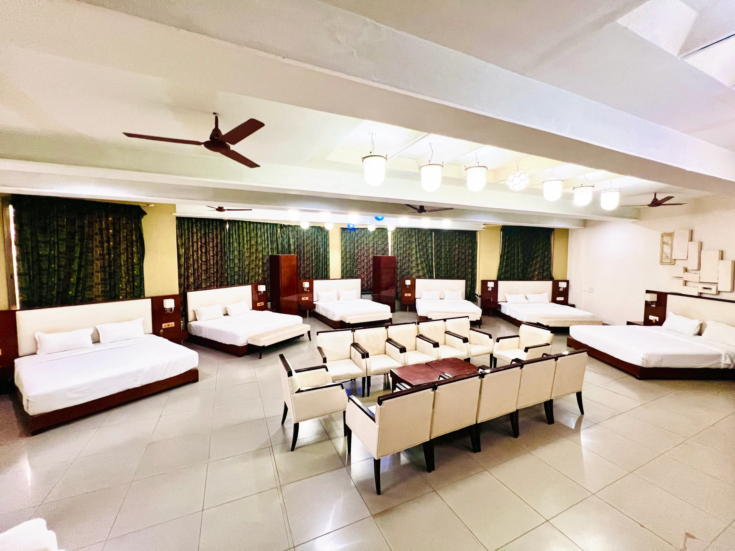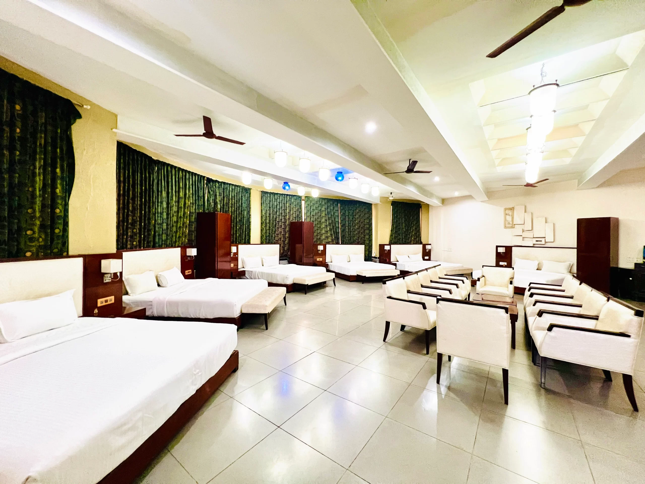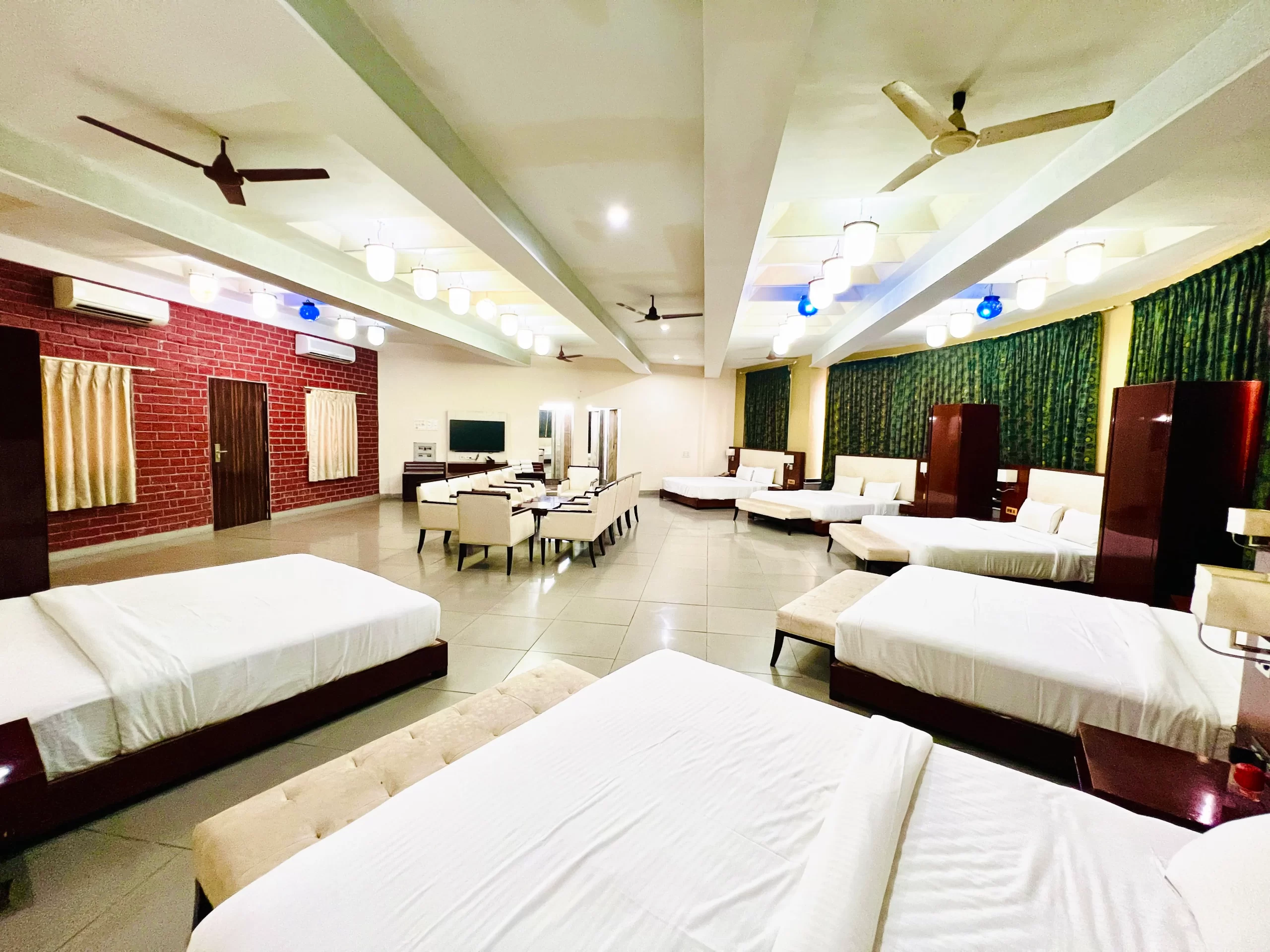 Perfect for larger families or group stays, our Family Cottage Rooms feature multiple king-sized beds and multiple bathrooms, ensuring comfort, convenience, and privacy for everyone. Relax in a spacious, thoughtfully designed space that blends luxury with a homely feel.